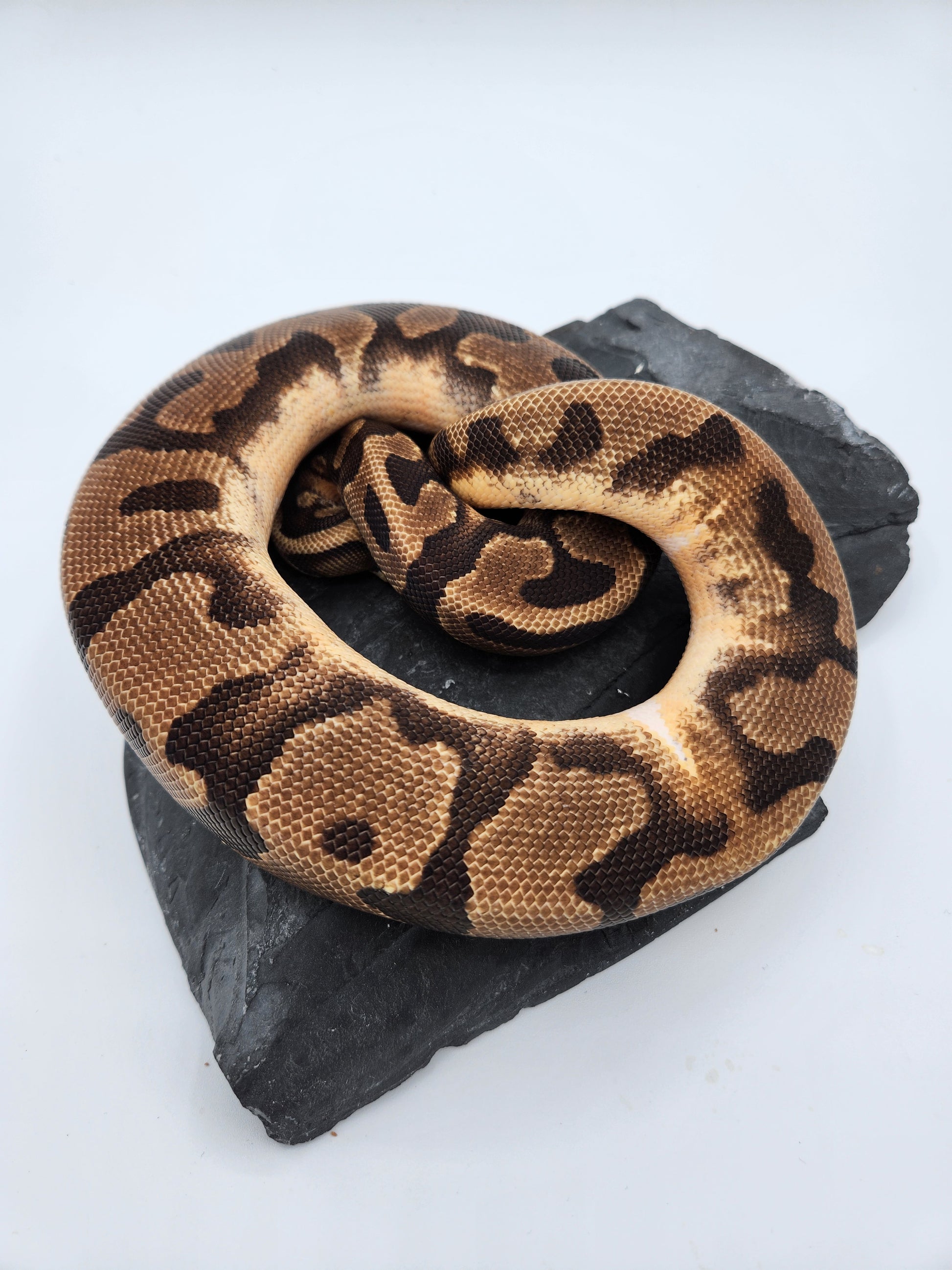Probably the lowest expression of pied we've seen yet, but despite that this guy is a very gentle and friendly ball python. Perfect for a first timer looking to have a companion lap snake.